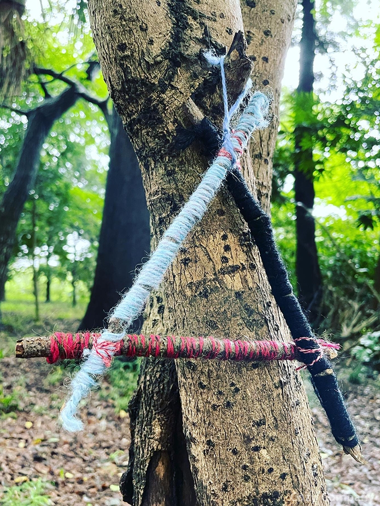 木の枝と毛糸使ってものづくりや、虫で遊んだり、ツリーハウス構想練ったり。